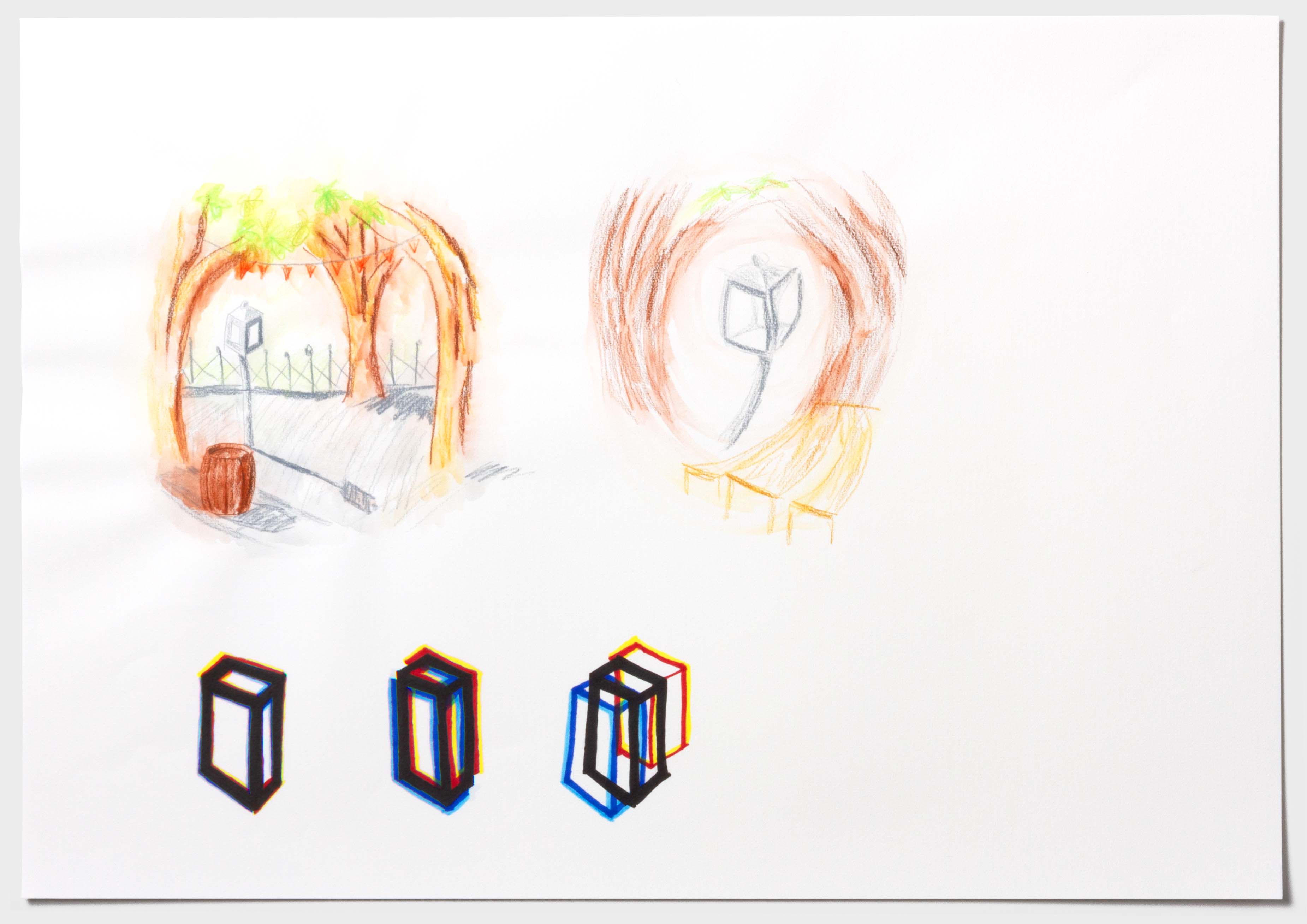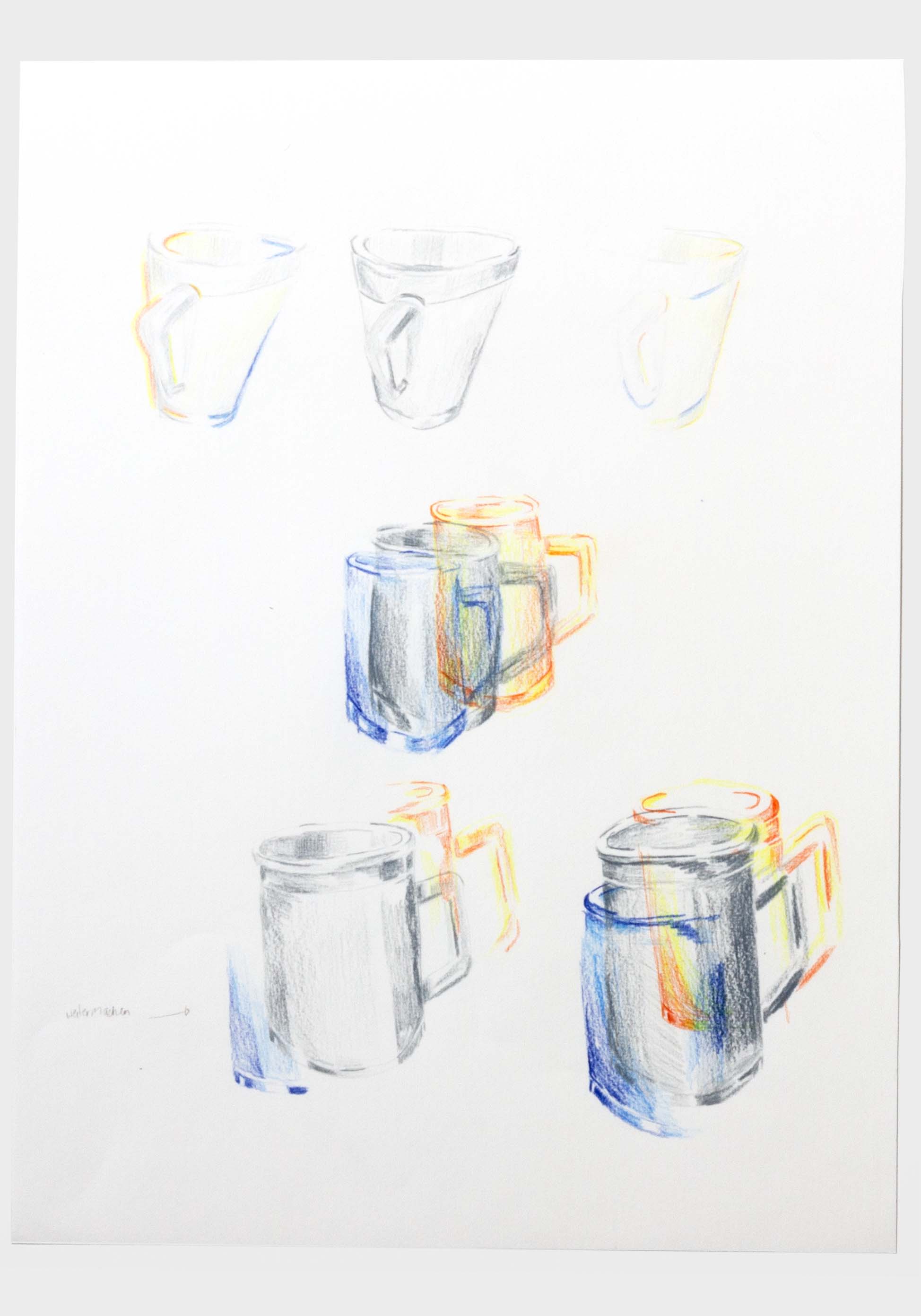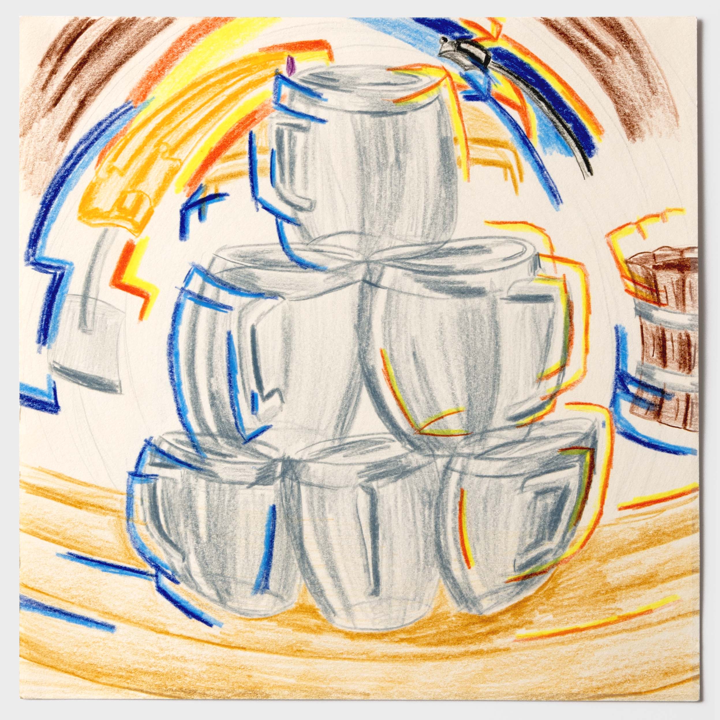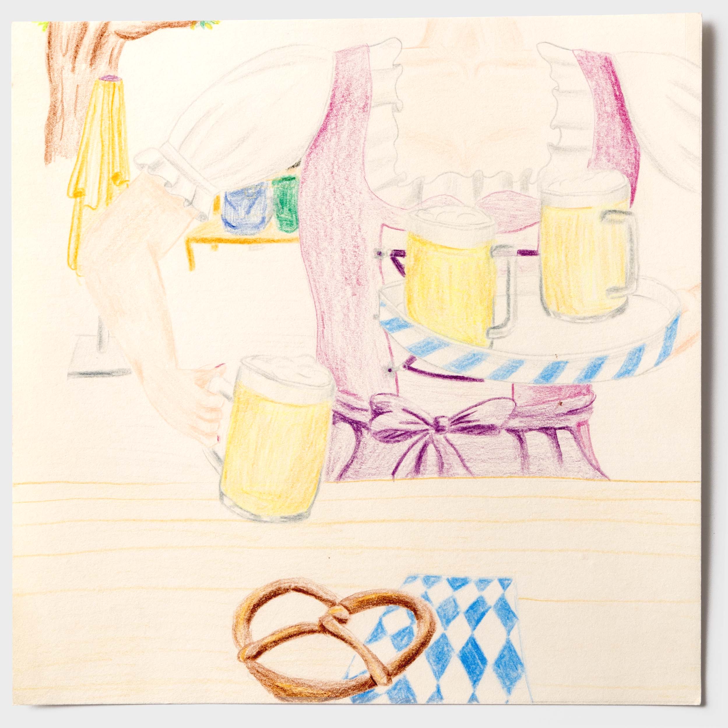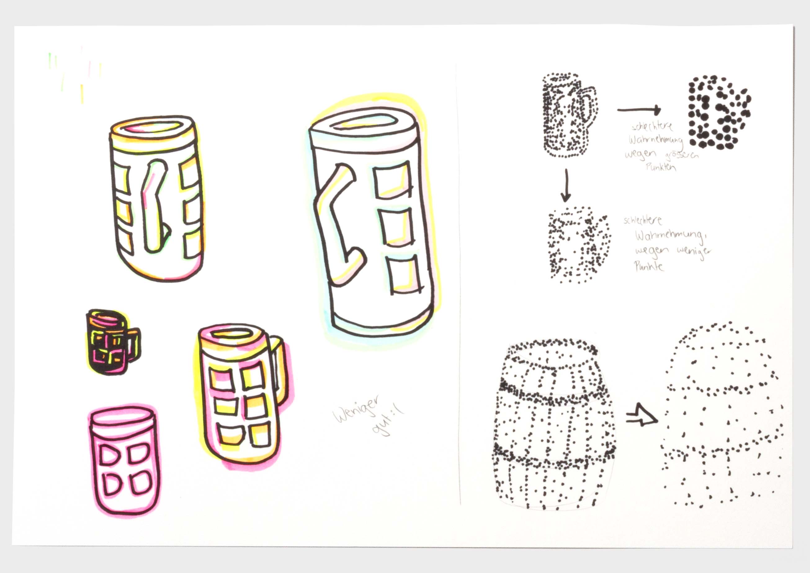 Wie ein Betrunkener sehen. Der ein oder andere hat bestimmt schon einmal nach einem Humpen Bier zu viel, nicht mehr ganz klar gesehen. Doch wie kann man diese Sicht eigentlich auf Papier bringen? Nach einem langen Prozess jene Frage zu verfolgen, ist diese Bilderreihe entstanden. Die Bildreihe steigert sich bis ins Abstrakte. Ich habe die wilde betrunken Art in meinem Zeichnungsstil aufgenommen und ebenso wild darauf losgemalt. Diese Wucht verleiht der Bildreihe eine schwungvolle Dynamik. Des Weiteren war es eine gute Erfahrung, die Hemmungen von «Fehler» beim Zeichnen abzulegen.