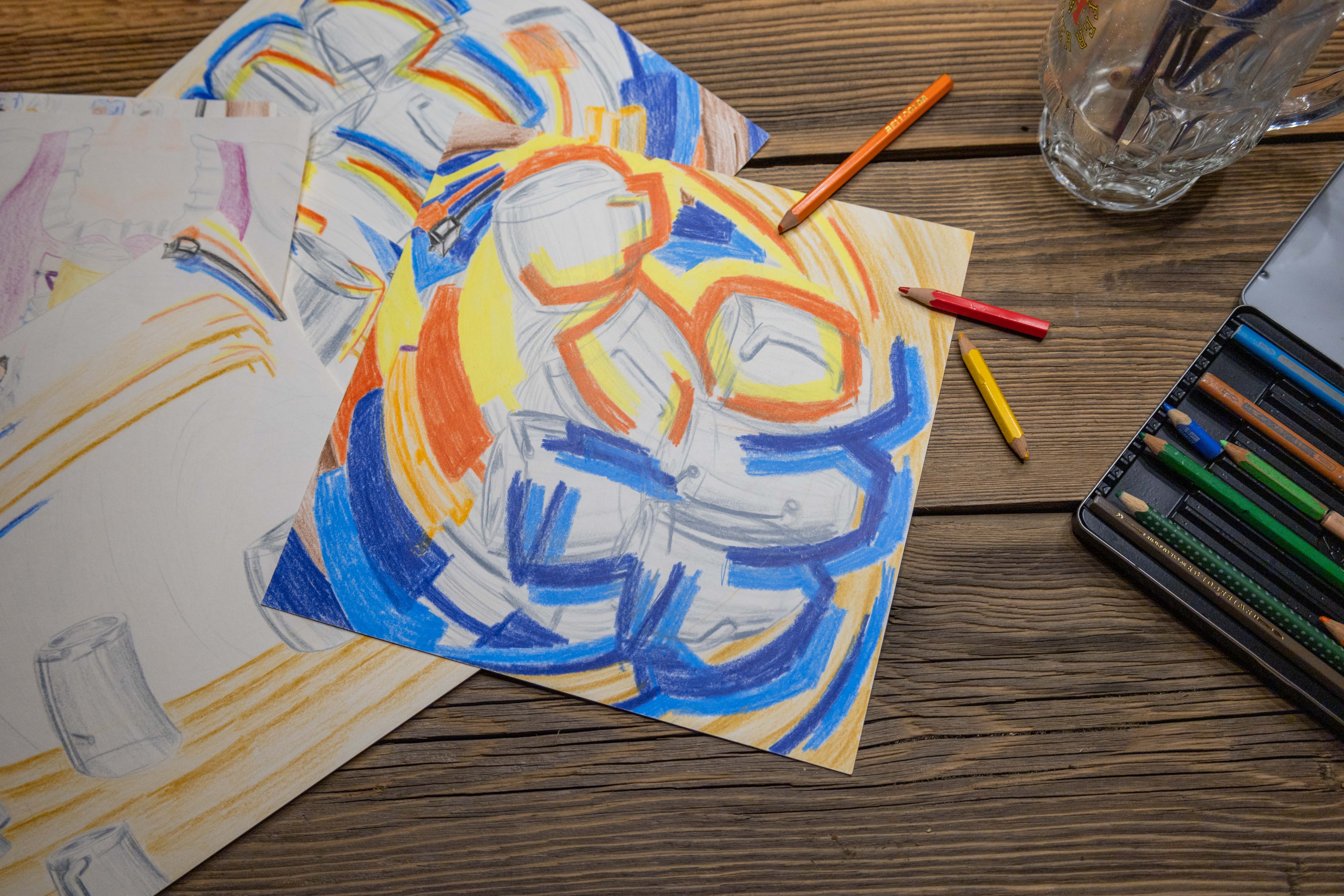See like a drunk. One or two of you have probably lost their vision after one too many bottles of beer. But how can you actually capture this vision on paper? After a long process of following this question, this series of pictures was created. The series of pictures extends into the abstract. I recorded the wild drunken nature in my drawing style and painted just as wildly on it. This vigour gives the series of pictures a lively dynamic. It was also a good experience to shed the inhibitions of "mistakes" when drawing.